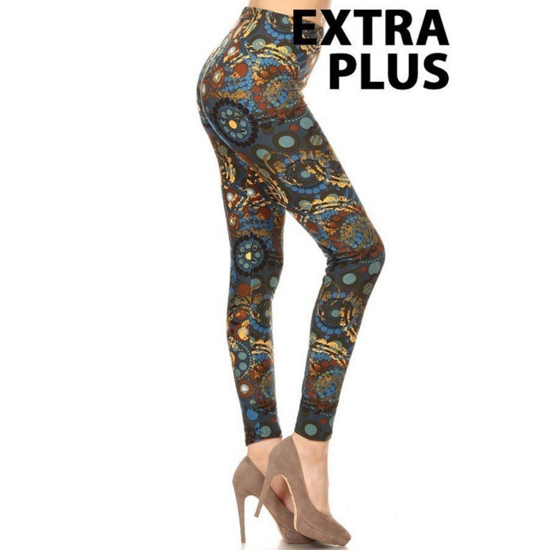 Description: 3X5X legging en tricot doublé imprimé paisley et mandalas avec taille élastique.