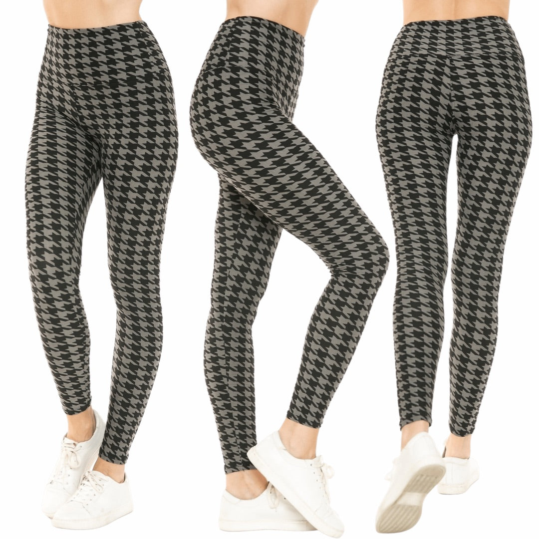 Description : legging taille haute imprimé pied-de-coQ avec ceinture de style yoga de 12,7 cm. 92 % polyester, 8 % élasthanne. Tissu doux au beurre. Taille unique. Convient aux tailles 2 à 12.