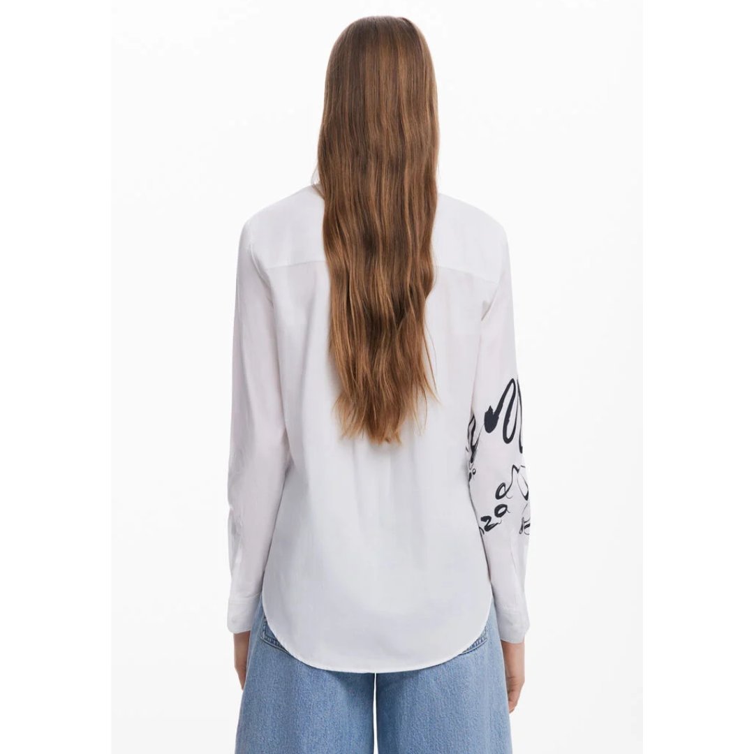Chemise coupe régulière de couleur unie avec imprimé de lettres effet encre écrites à la main.