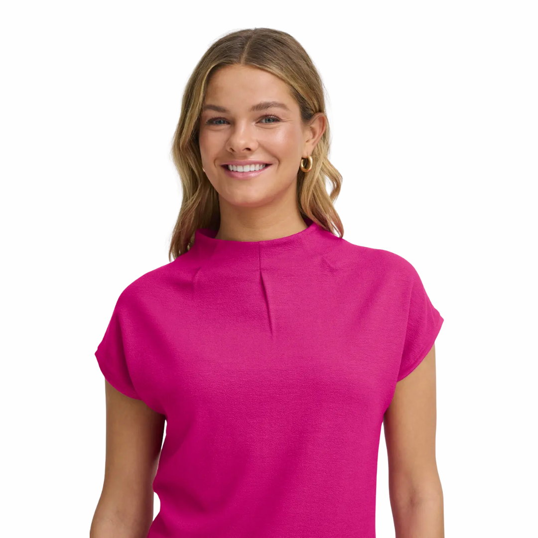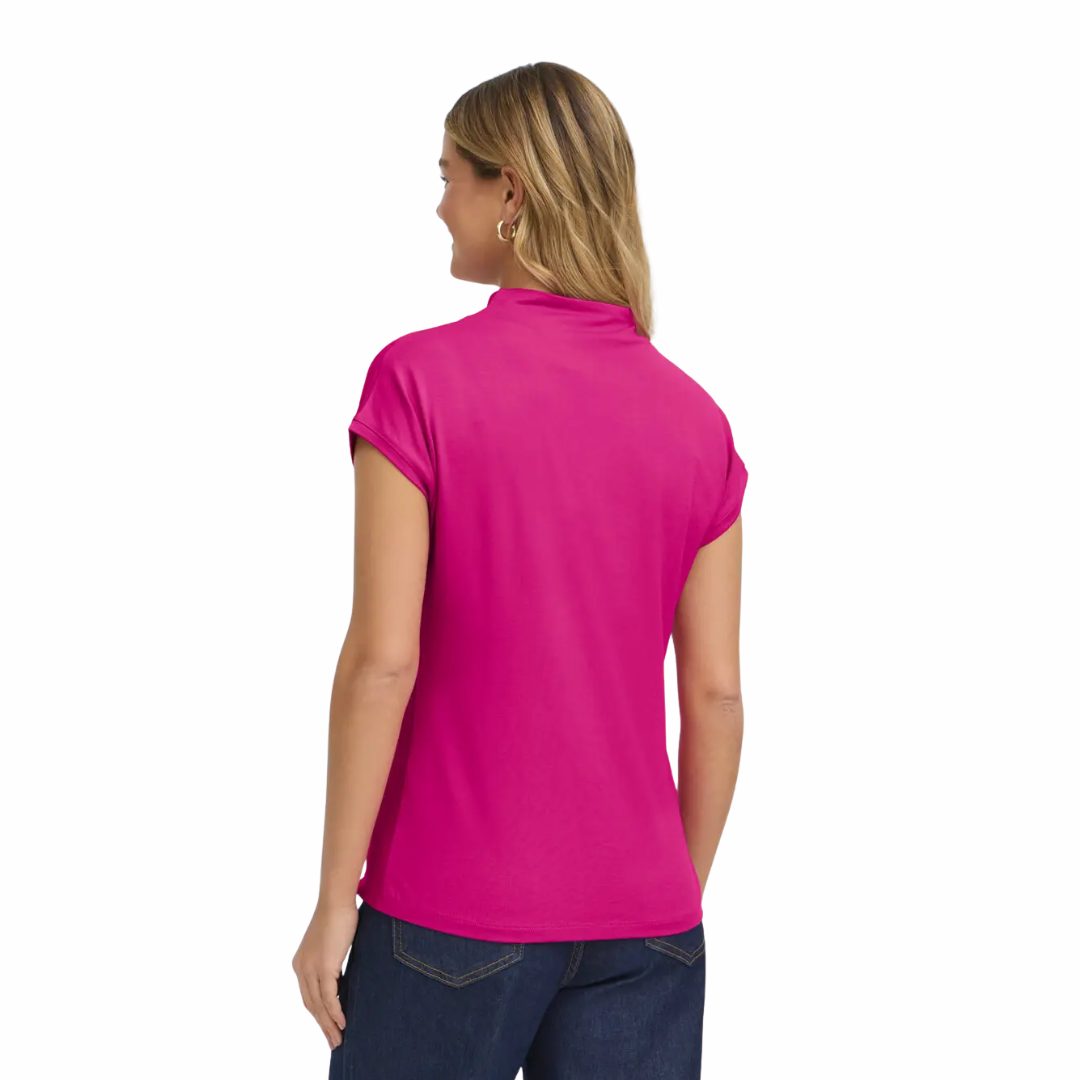 Ce top élégant se distingue par sa coupe épurée et son col montant délicatement structuré, qui apporte une touche sophistiquée au look. Les manches courtes légèrement tombantes offrent un tombé fluide et flatteur, idéal pour un confort au quotidien. Facile à agencer, il se porte aussi bien avec un jean pour une tenue chic décontractée qu’avec un pantalon plus habillé pour le bureau. Une pièce polyvalente et féminine, parfaite pour rehausser une tenue sans effort.