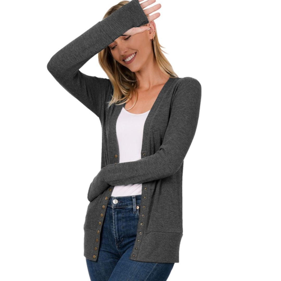 VESTE/ CARDIGAN À BOUTONS-PRESSION PASSE-POUCE