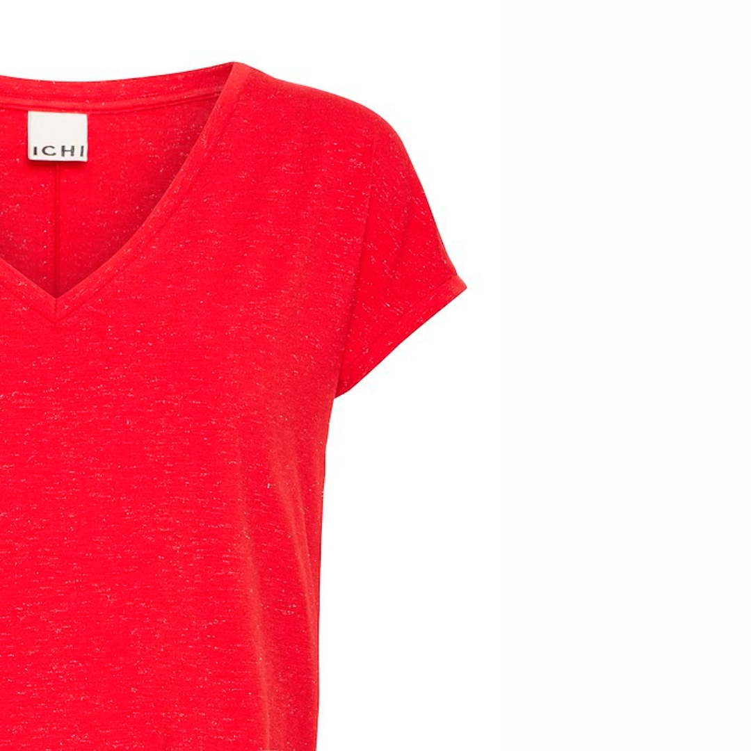 Ce t-shirt Ichi au col en ‘V’, coupe et longueur régulières, avec des mancherons est composé de 46% de polyester, 46% de viscose, 5% d'élasthanne et 3% de lurex. Ajoutez une touche de glamour à votre garde-robe avec ce t-shirt moderne et confortable.