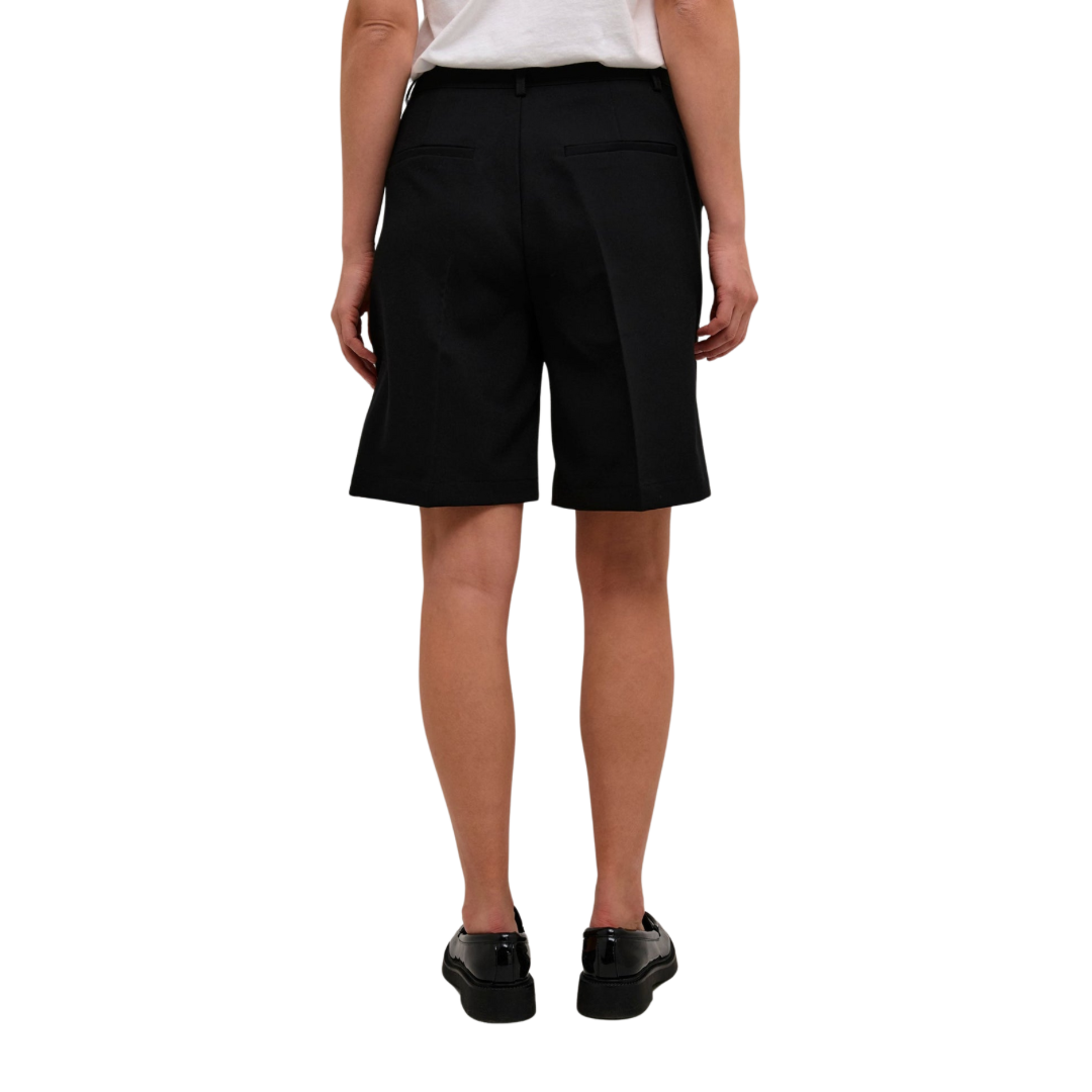 Le short KAsakura est un short intemporel que vous pouvez porter en toute occasion. Il présente une taille mi-haute avec une ceinture classique et une fermeture éclair. Le short a des jambes larges et droites, et il descend jusqu'aux genoux. Il possède des poches latérales et des poches arrières passepoilées.Coupe