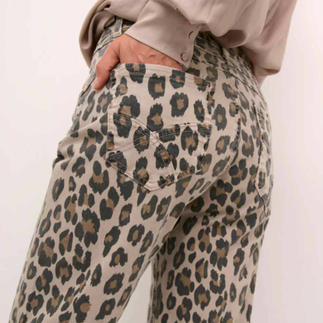 Magnifique pantalon style jeans imprimé animal, coupe régulière, COCO FIT, jambe pleine longueur.