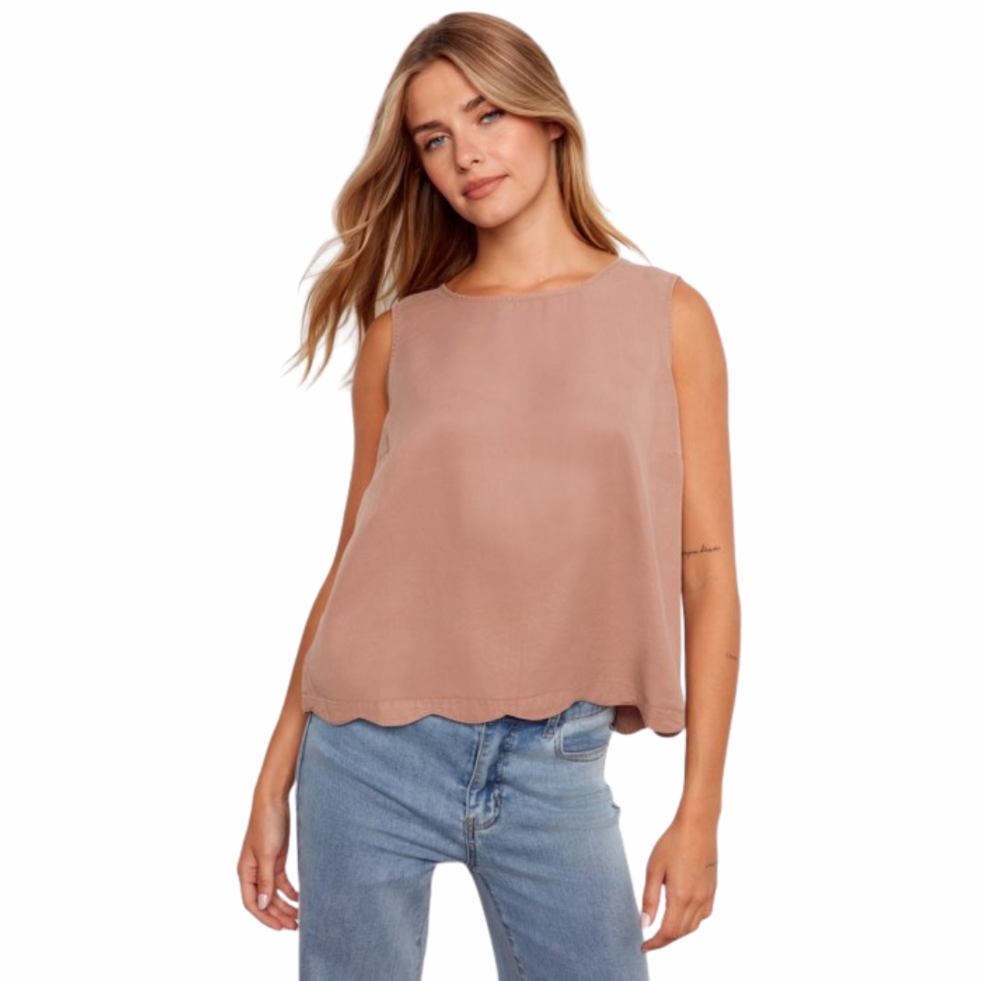 Débardeur sans manches à ourlet festonné avec boutons décoratifs au dos