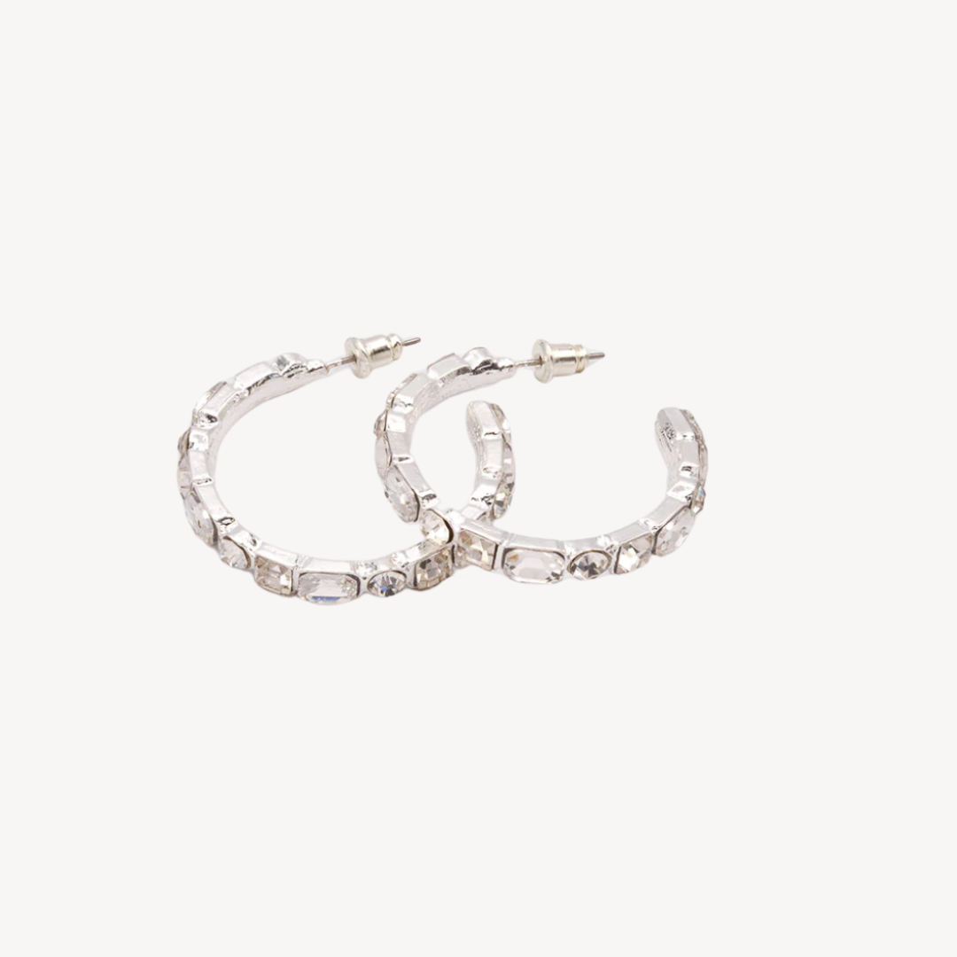 BOUCLES D’OREILLES CRÉOLES CLASSIQUES AVEC CRISTAL SLV-CARACOL