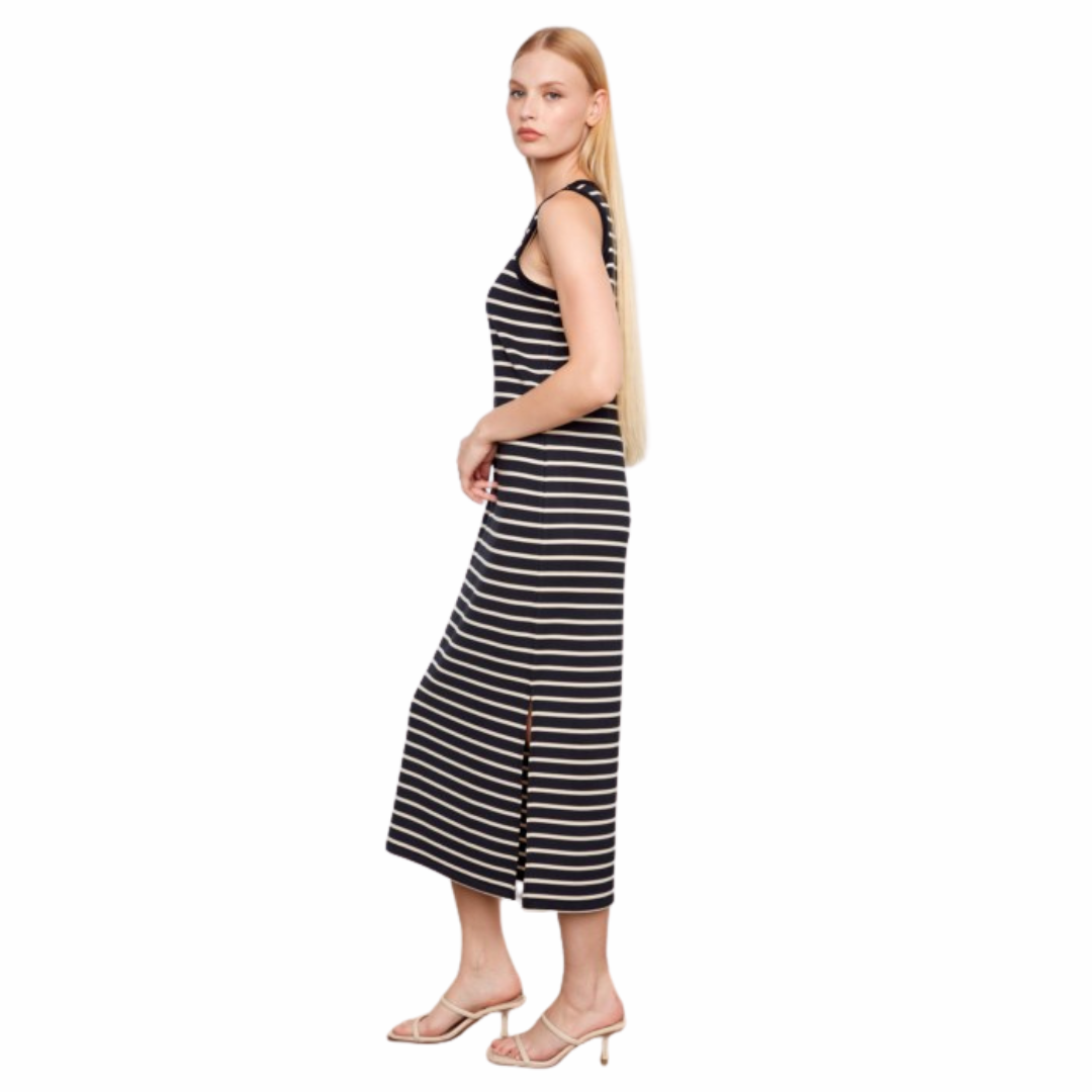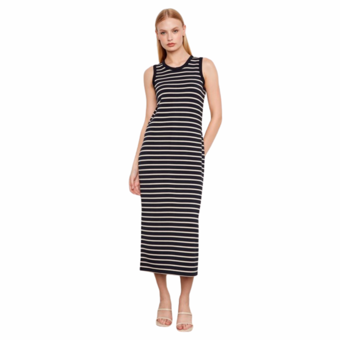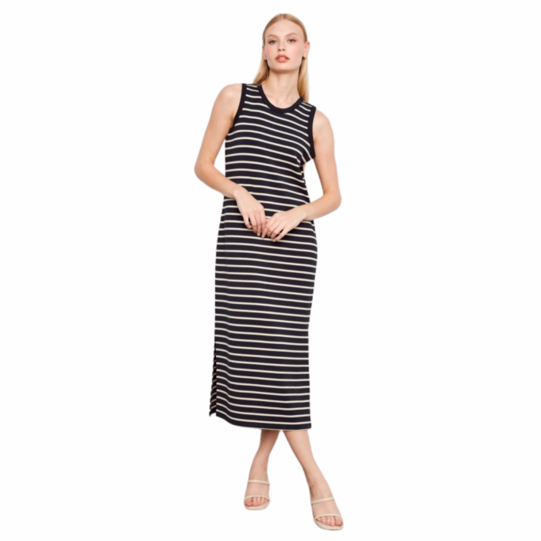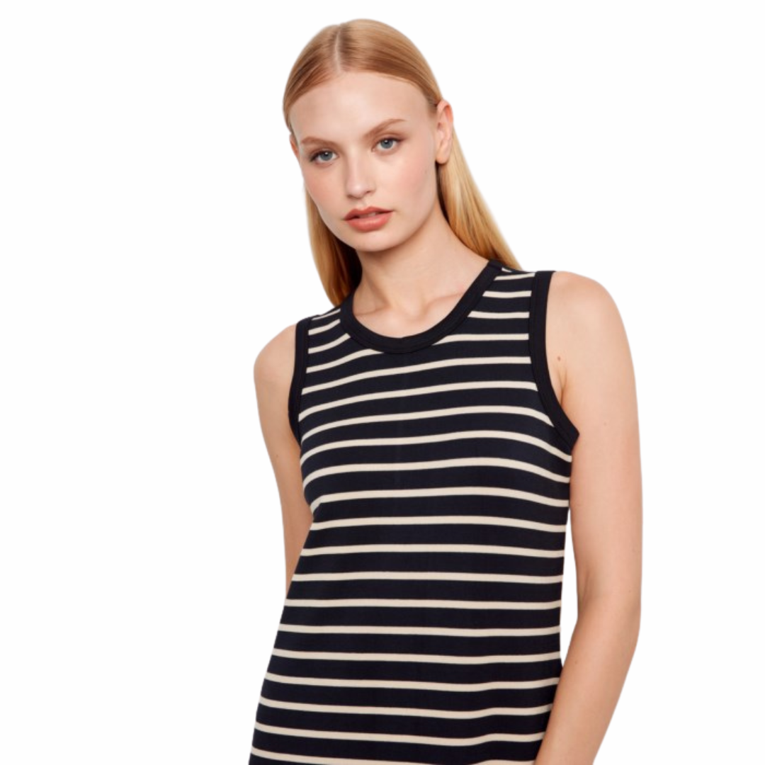 Robe sans manches rayée en fil teint, style scuba