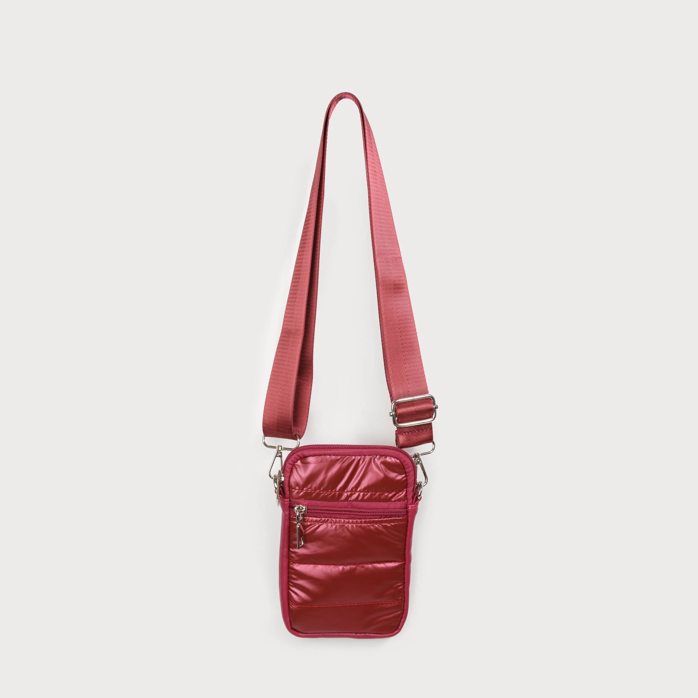 Pochette matelassée pour téléphone portable avec fermeture à glissière. sangle réglable. insert en simili-cuir