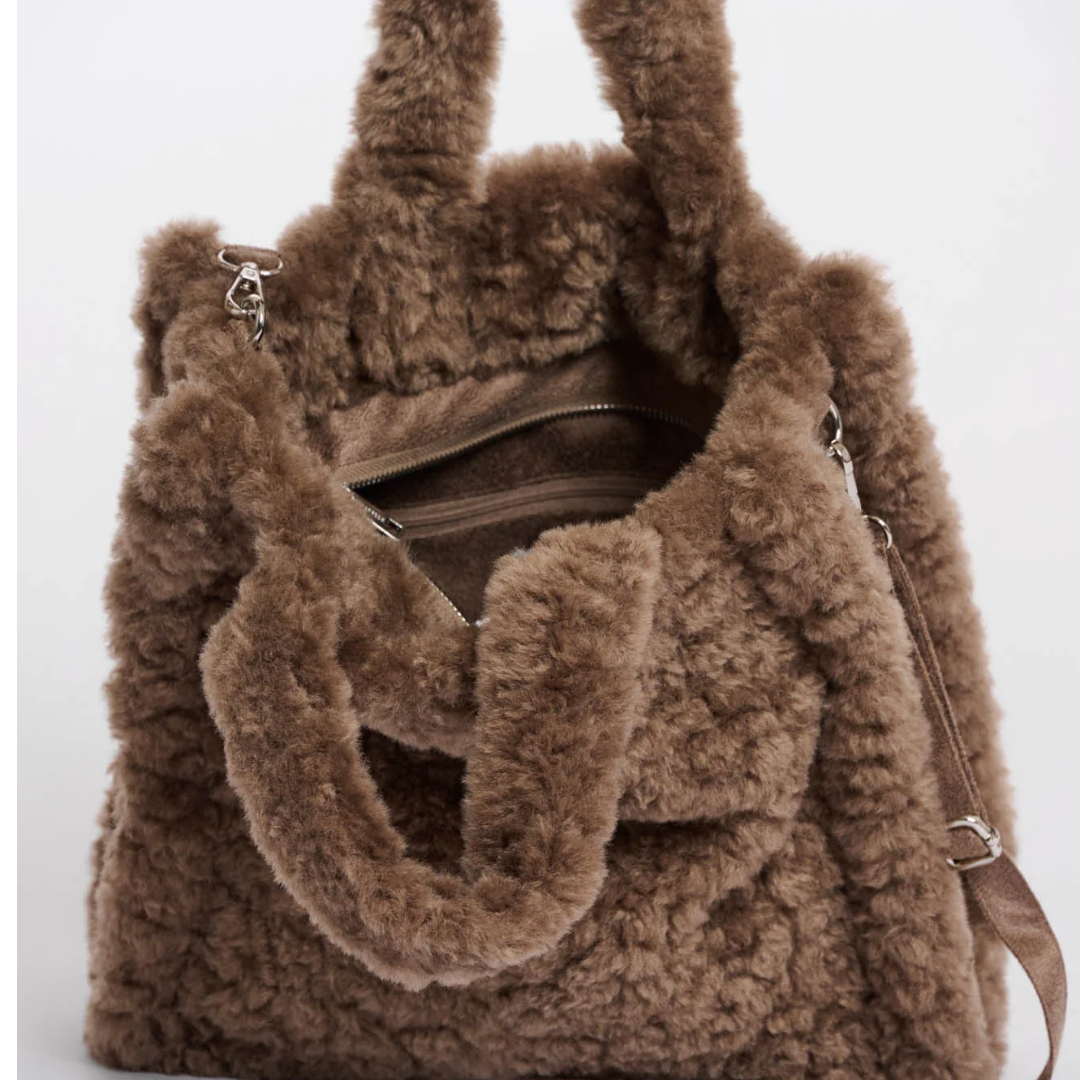 Ce petit shopper en fausse fourrure est un accessoire parfait pour ranger vos effets personnels les plus précieux. Ce sac à main est doté d'une fermeture à glissière et d'une petite poche avec fermeture à glissière à l'intérieur. Portez-le comme vous le souhaitez car ce sac a de courtes poignées en fausse fourrure et une longue poignée en faux daim détachable.