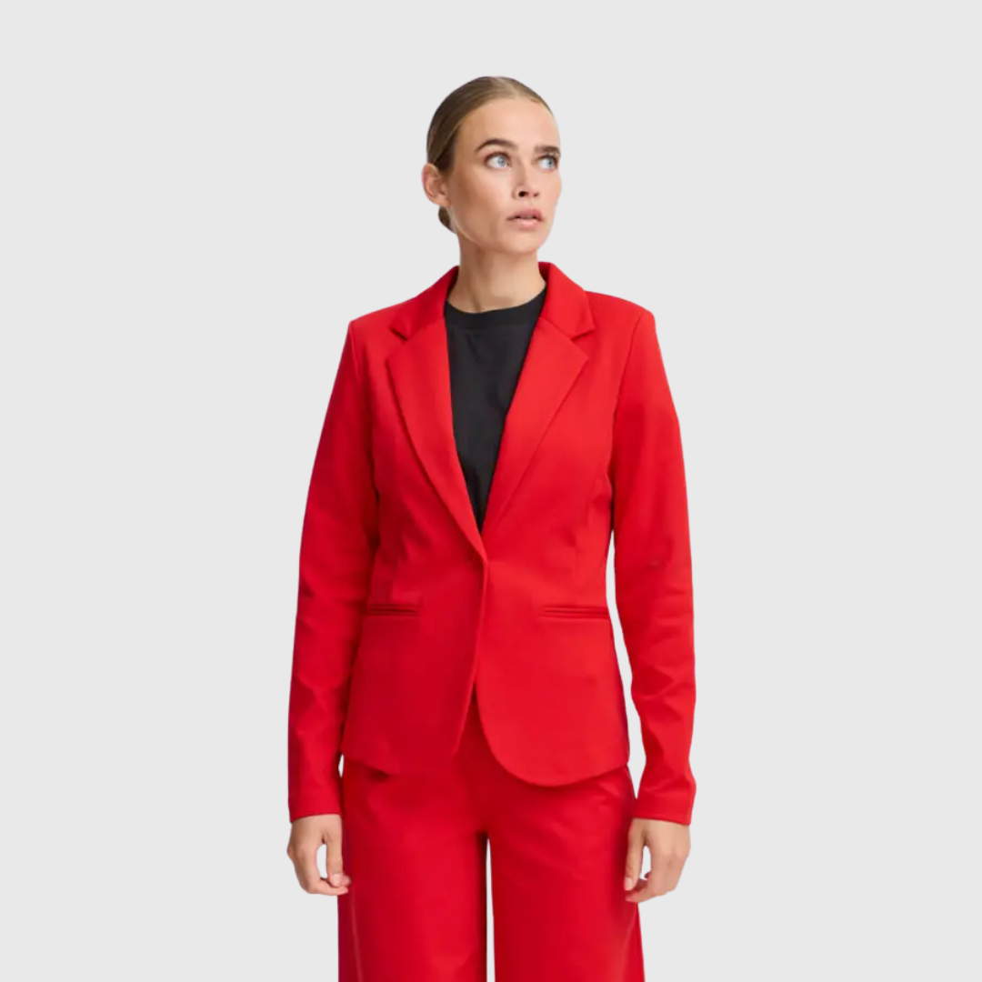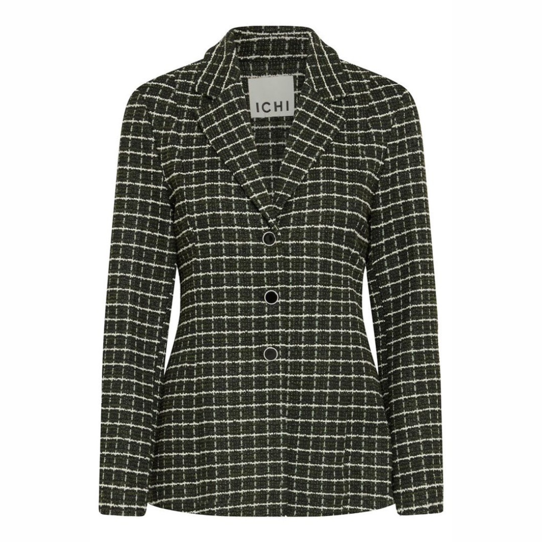 Ce veston en jacquard de la marque ICHI offre une allure élégante et contemporaine.