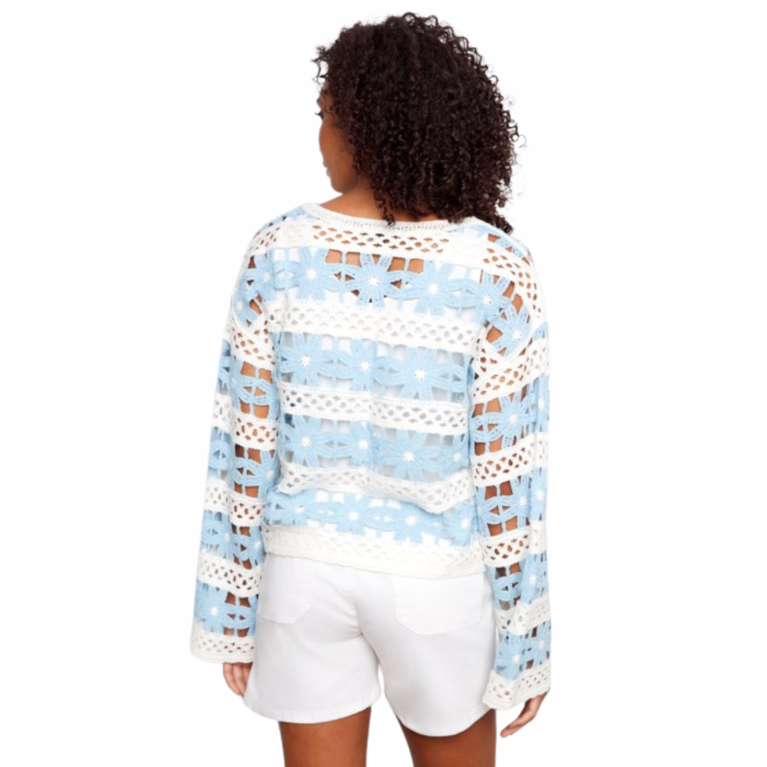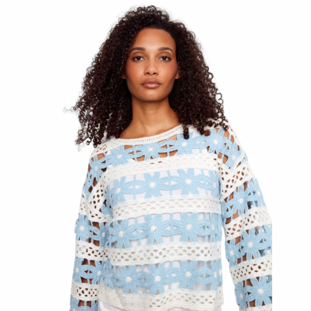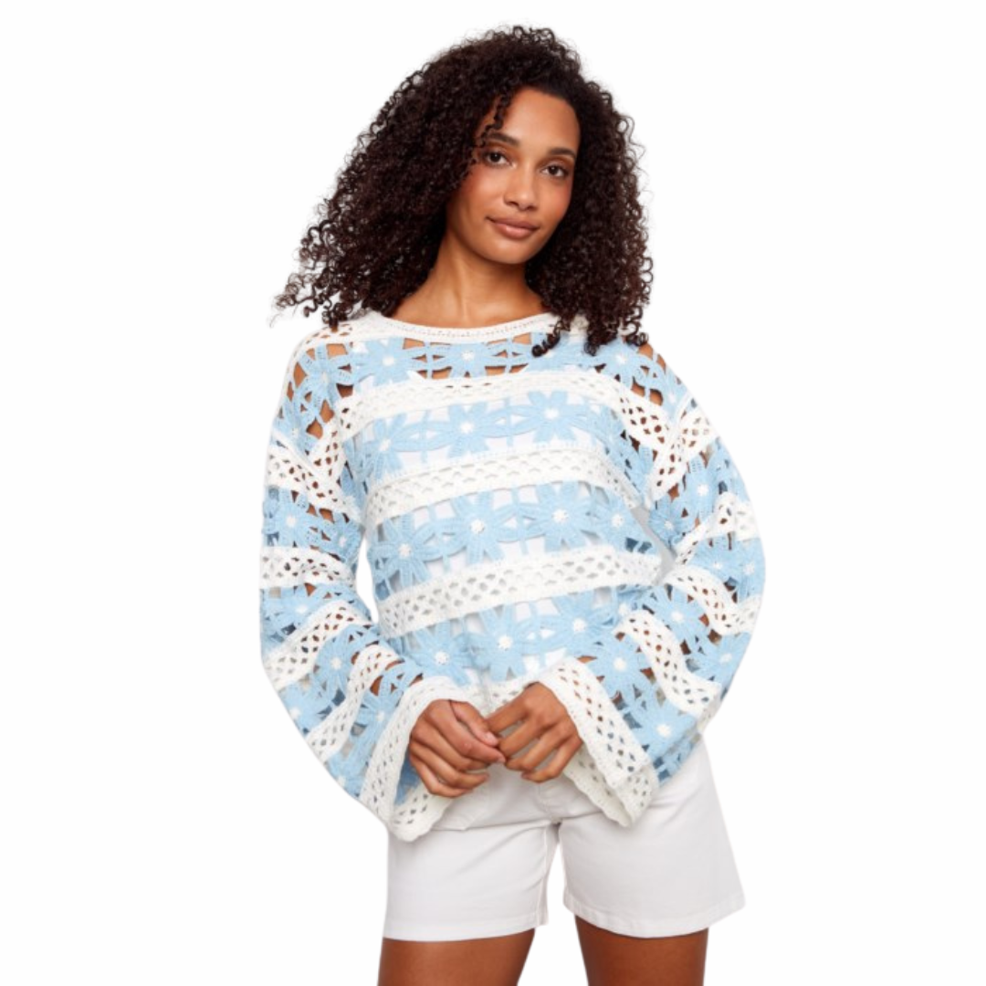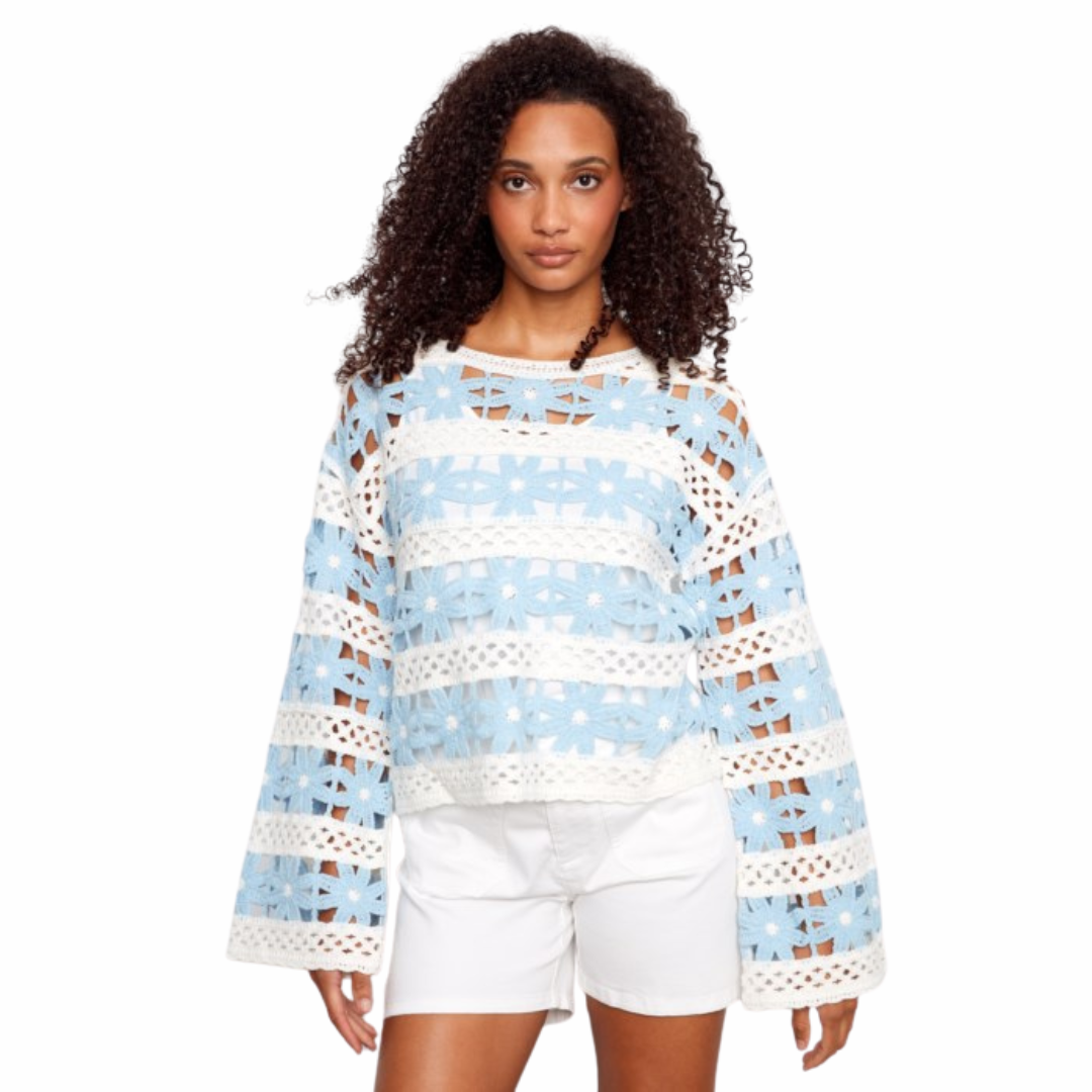 Haut à fleurs en crochet à manches cloche 3/4