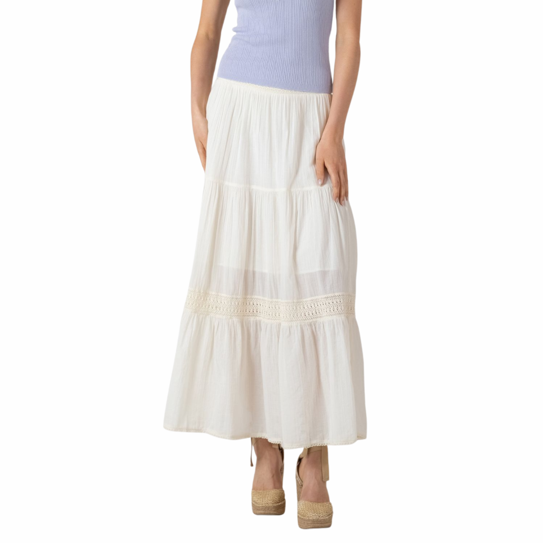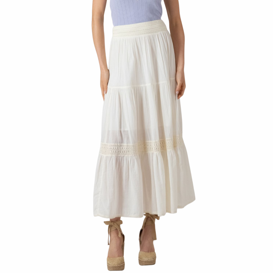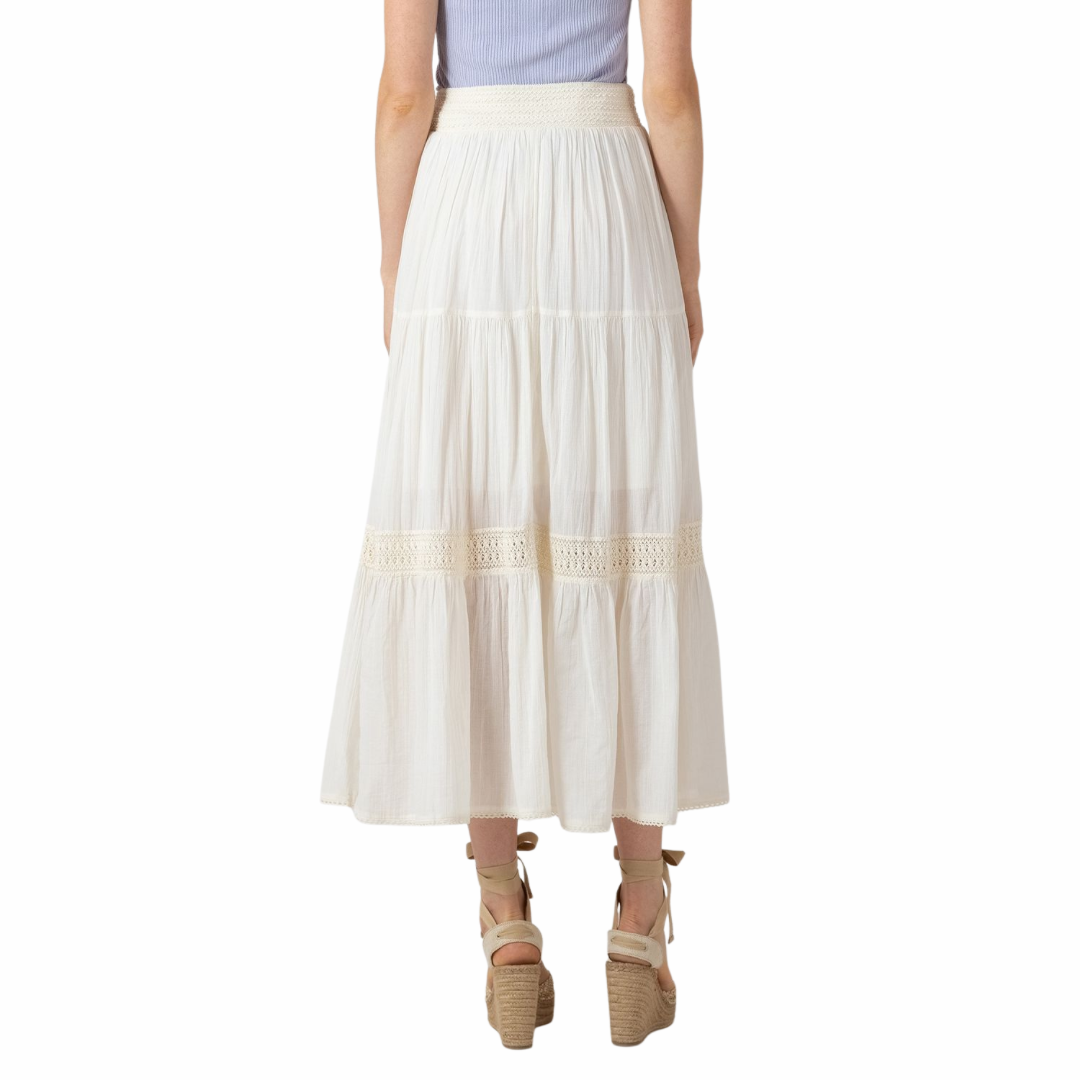 Jupe longue fluide cru à étages avec détail ajouré couple ample
