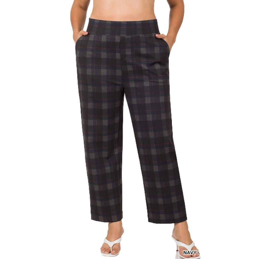 PANTALON HABILLÉ STRETCH À ENFILER À CARREAUX AVEC POCHES