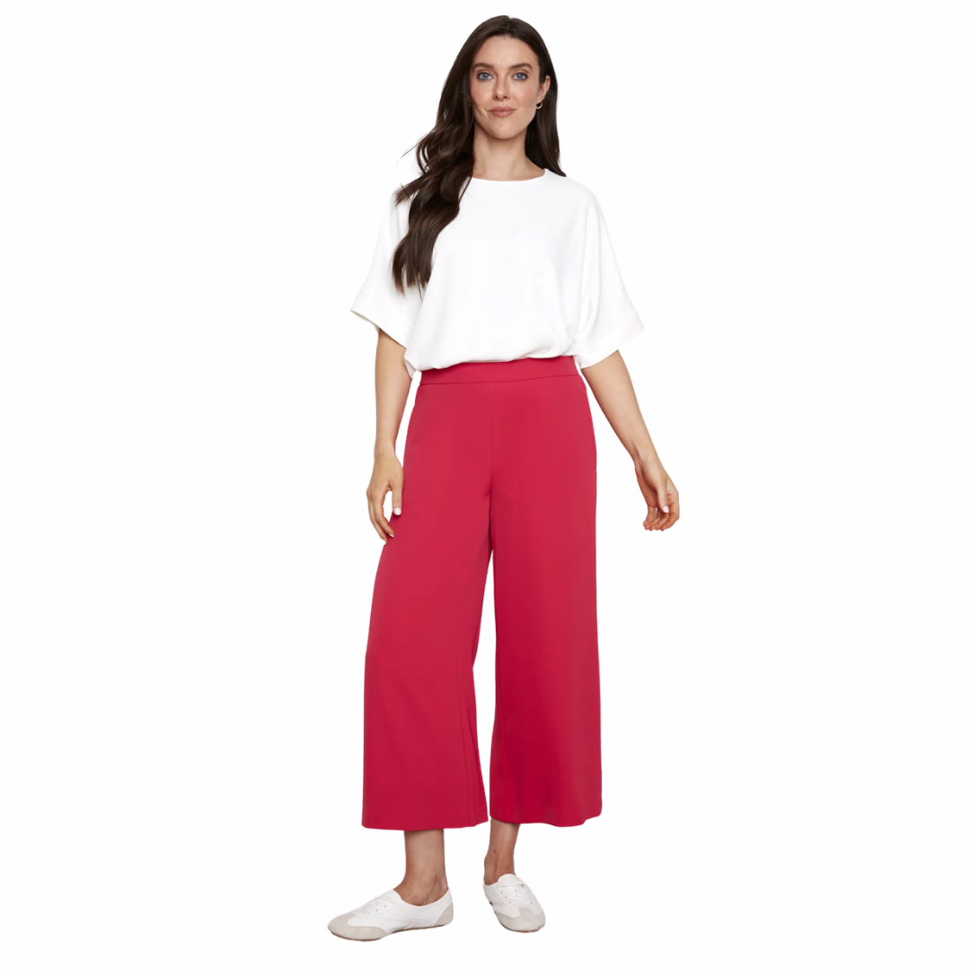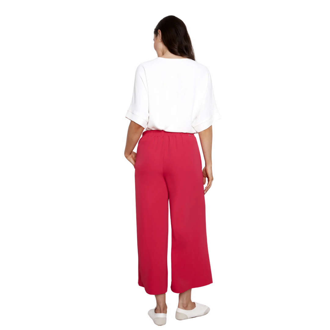 Ce pantalon crop à jambe large de la marque UP offre une allure chic et moderne, tout en restant incroyablement confortable. Son tissu effet soie végane tombe avec fluidité et donne une touche raffinée, parfaite pour une occasion spéciale, un 5 à 7, les fêtes ou même pour glisser dans la valise direction vacances et croisière. Polyvalent, il se porte aussi bien avec un simple t-shirt qu’avec un joli chemisier pour un look plus habillé.